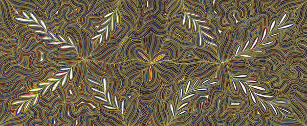 Ada's Dreamings are Mountain Devil Lizard, Bean, Emu, Pencil Yam, Grass Seed and Small Brown Grass. These dreamings she shares with Gloria Petyarre, Emily Kngwarreye, Myrtle Petyarre and Kathleen Petyarre. She reminds us that so much of desert art originated in traditional, ceremonial body painting designs. It is this rawness which speaks clearly of her knowledge of the land, her people and their ceremonies.
